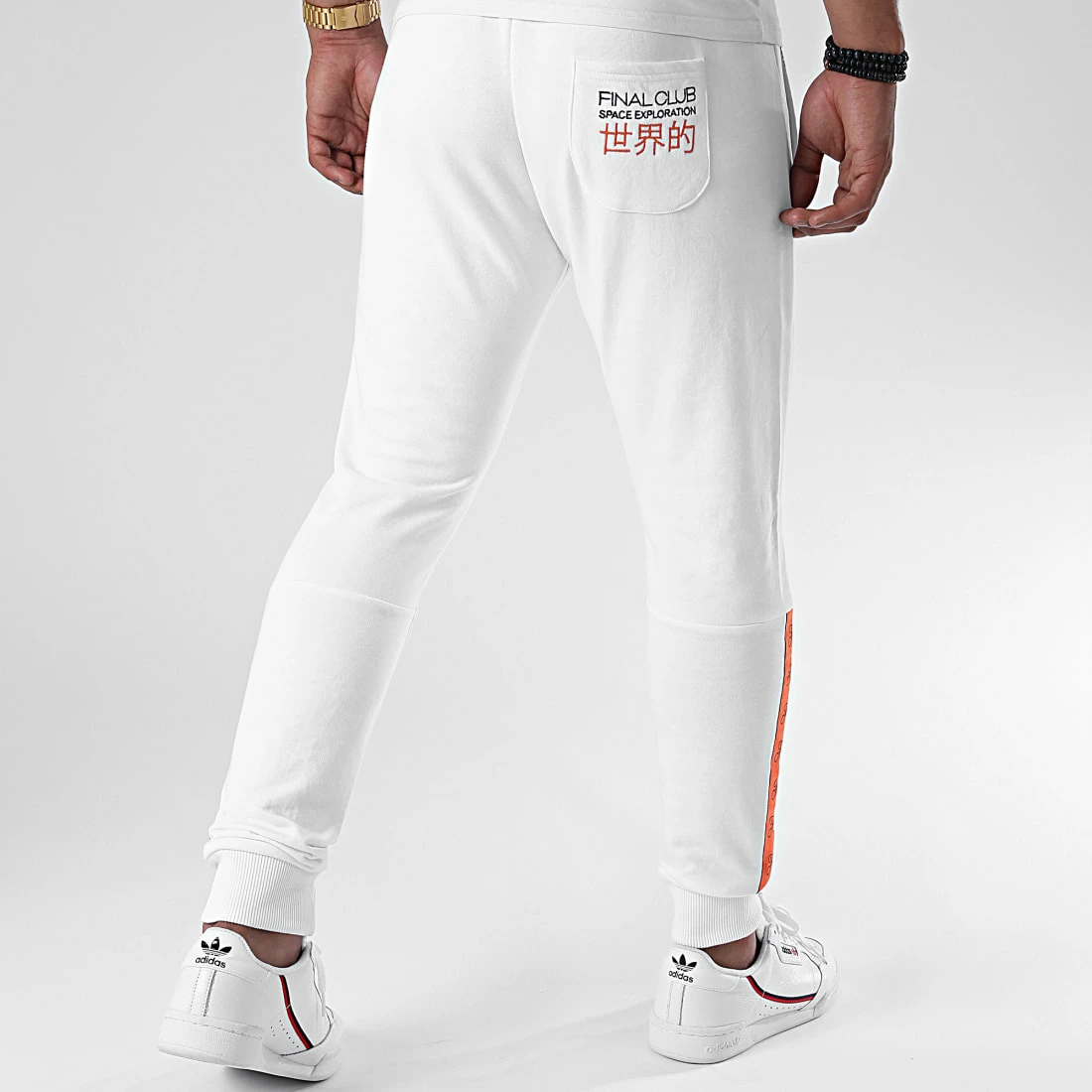 • Bande Final Club brodée sur le bas des jambes