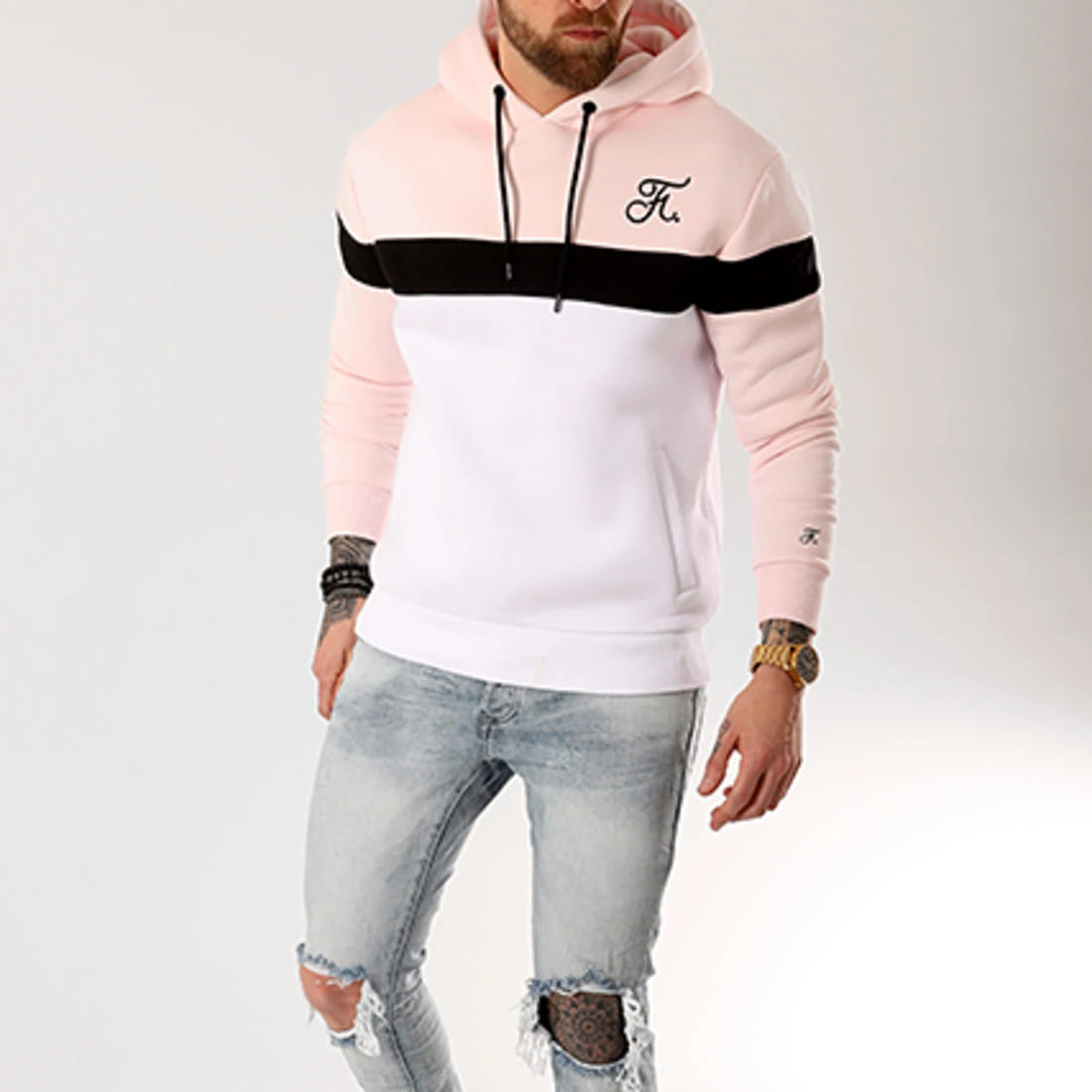 • Sweat capuche tricolore à poches